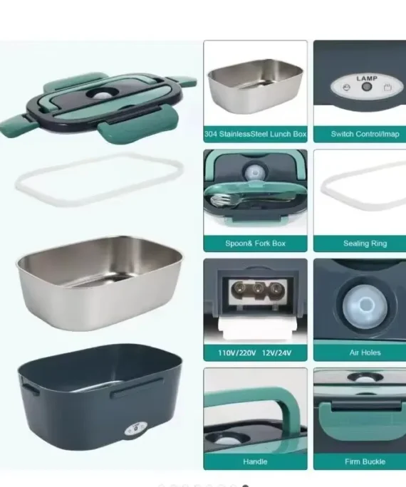 Electric Lunch Box 80W Portable Heated Lunchbox Adults Includes 2 Stainless Steel Containers Car Truck Work Use Leak Proof Food